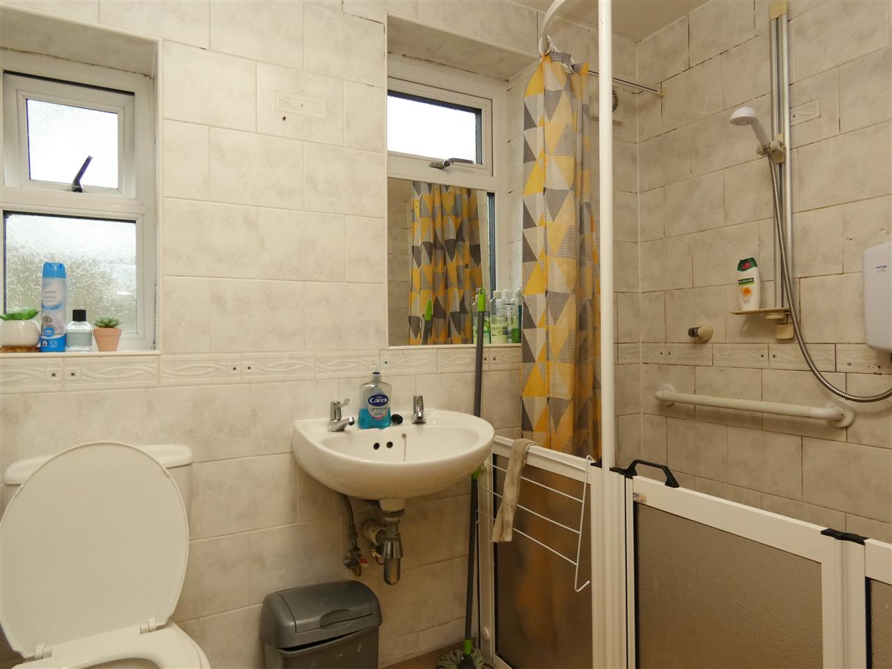 comprising of a shower enclosure with Triton fitment, wash hand basin, low level WC, tiled walls, two windows to the rear elevation.