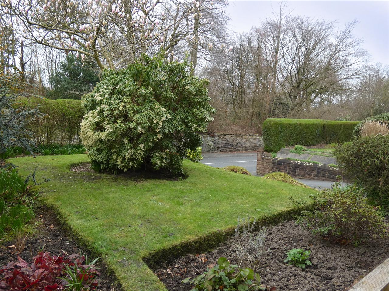 Enclosed garden, laid to lawn with adjacent driveway providing off road parking.