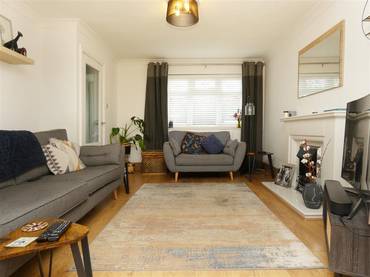 with laminate flooring and French doors onto rear garden.