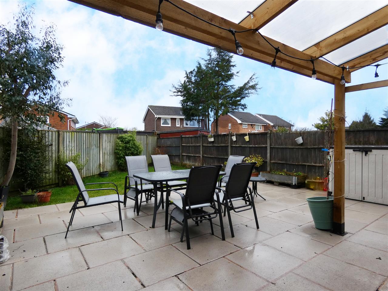 Open plan garden, laid to lawn with adjacent driveway providing off road parking.