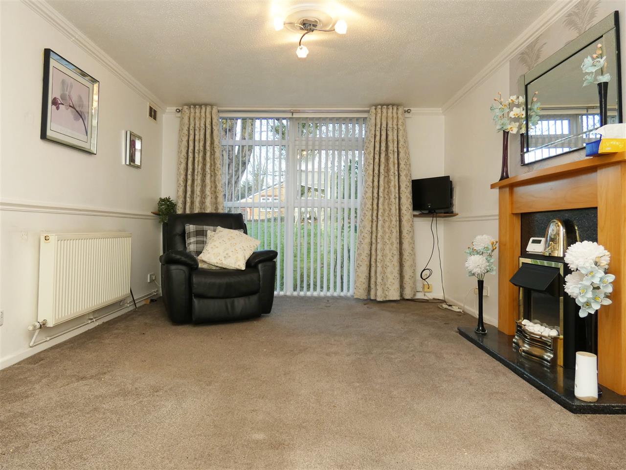 with feature fireplace with electric fire, dado rail, window to the front elevation.