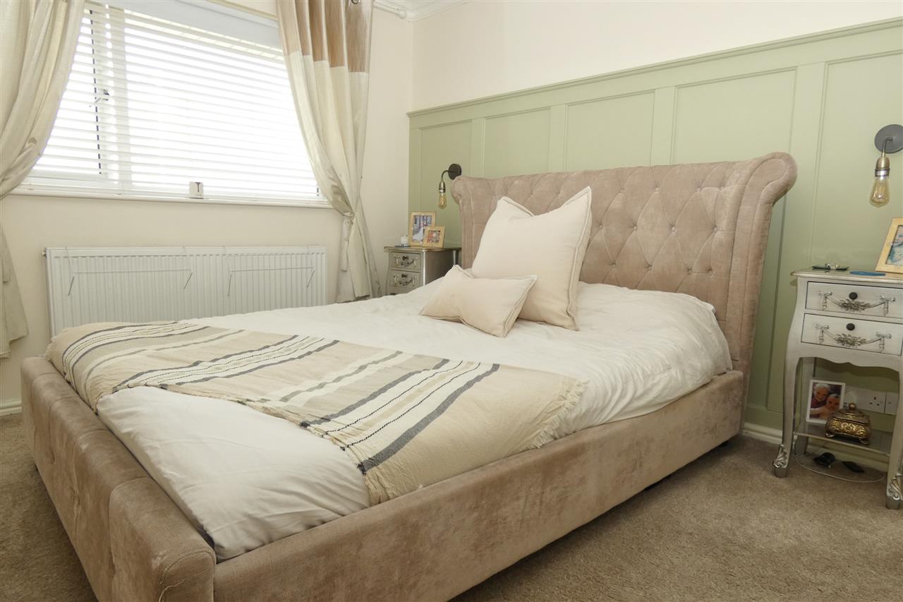 with a range of built in wardrobes, feature panelled wall, window to the front elevation.