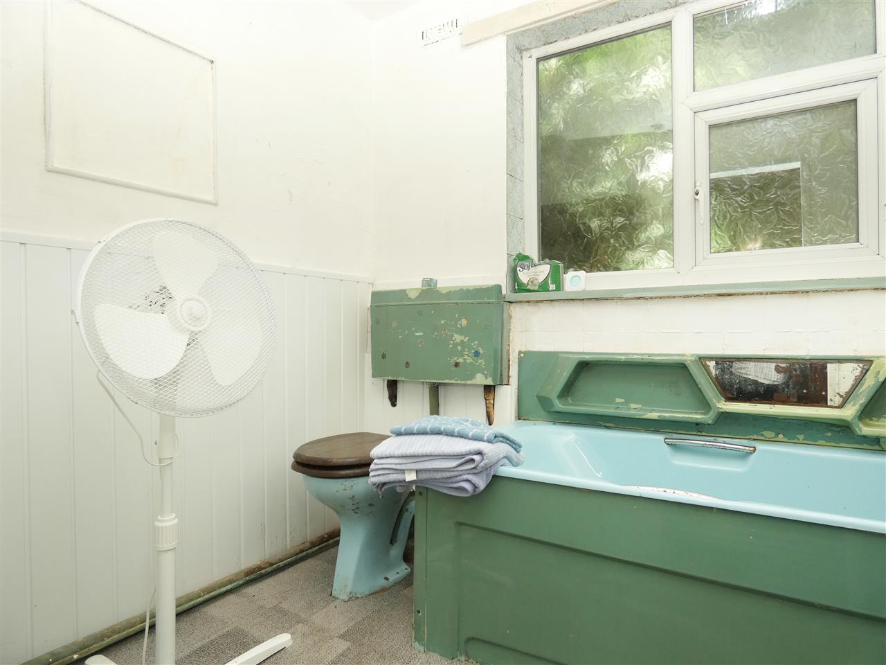 comprising of a panelled bath, pedestal wash hand basin, low level WC, window to the rear elevation.