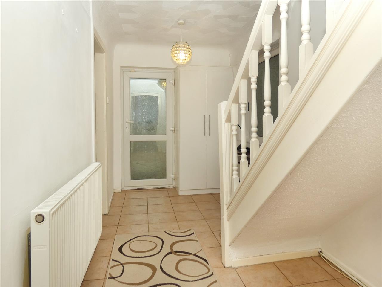 With built in cupboard, tiled floor, stairs to first floor and window to the front elevation.