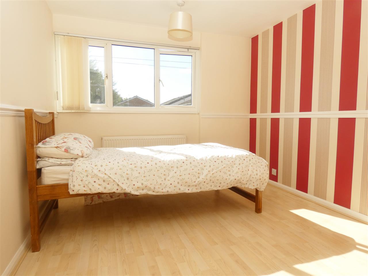 with laminate flooring, built in wardrobe, dado rail and window to the rear elevation.