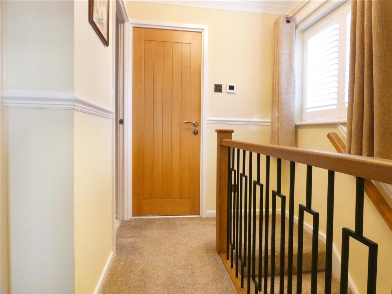 With dado rail, window to the side elevation with plantation shutter, access to loft space.