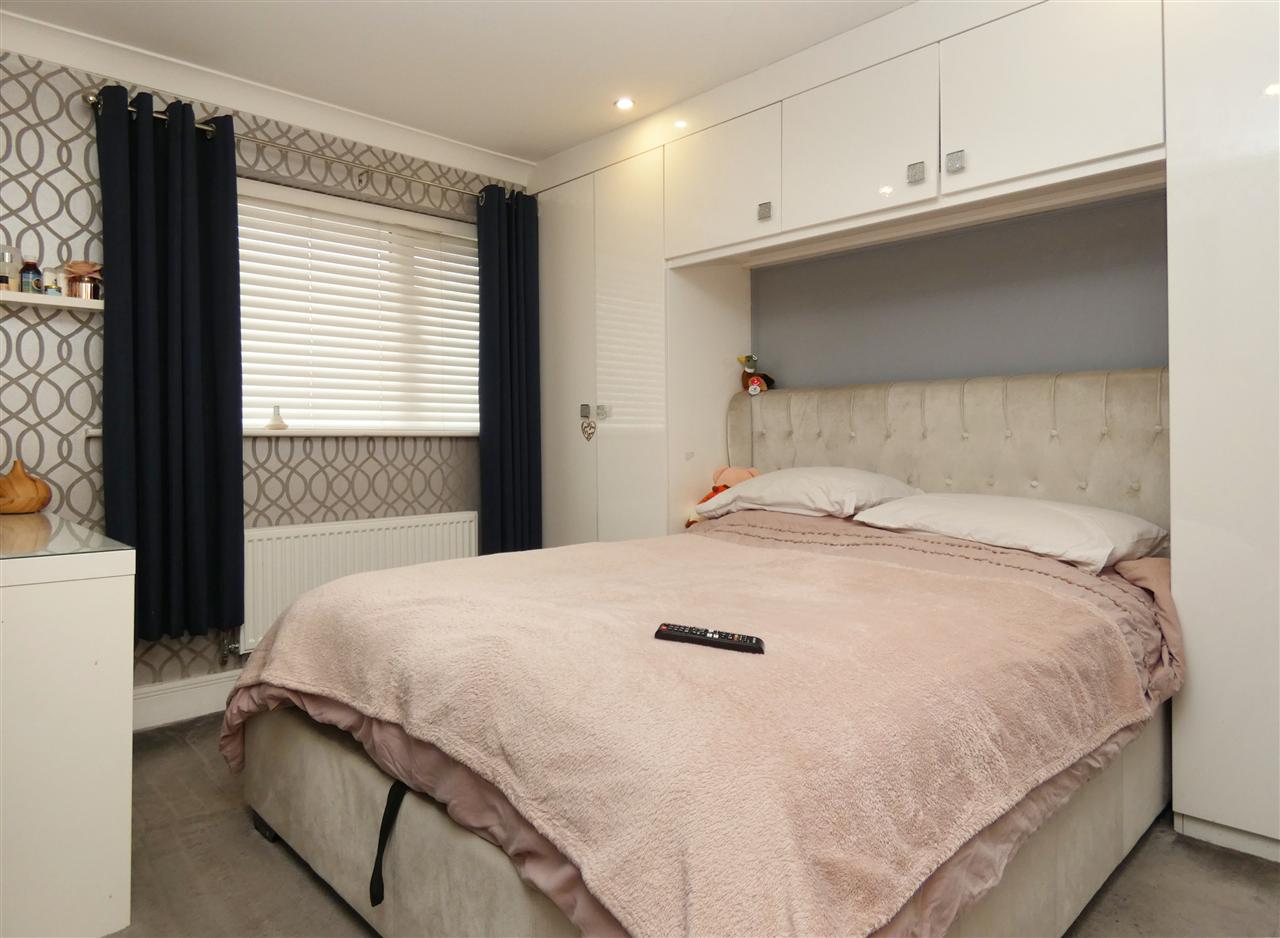 with fitted wardrobes, spot lighting and window to the front elevation.