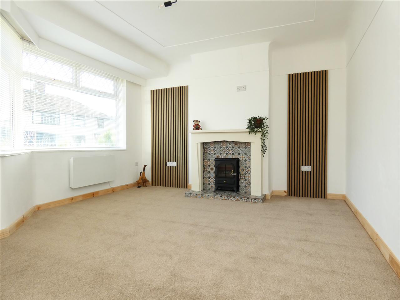 with feature fireplace, electric heater and window to the front elevation.