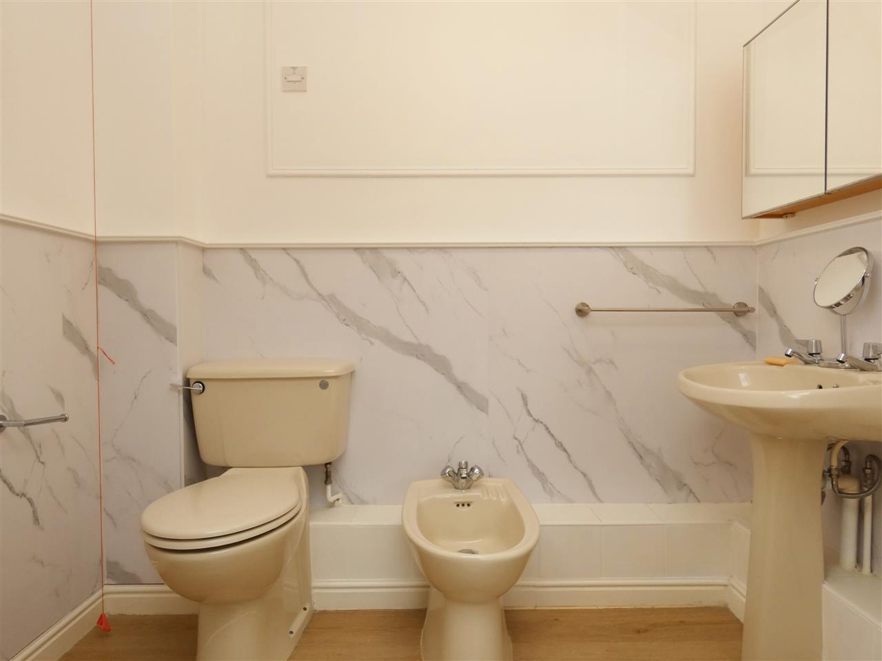 with low level WC, bidet and wash hand basin, LVT flooring.