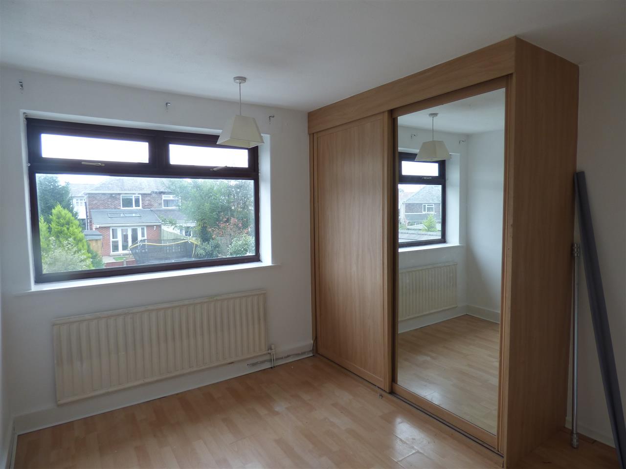 Laminate flooring with fitted robes and window to the front aspect.