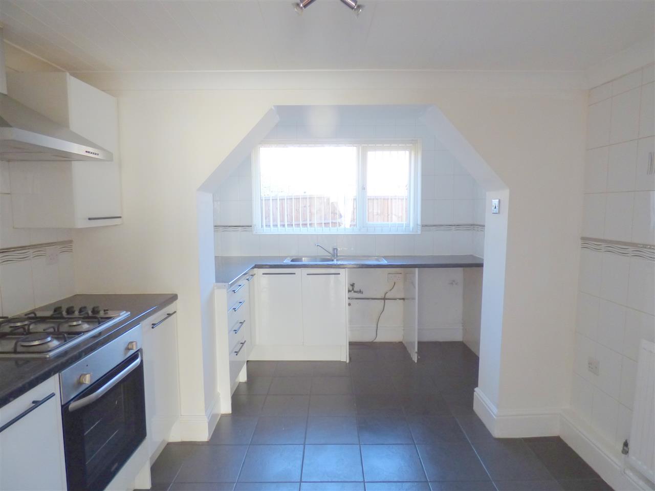 Fitted with a range of wall and base units with contrasting work surfaces. Integrated gas hob, electric oven and extractor hood. Plumbing for a washing machine, window to the rear aspect and tiled flooring.